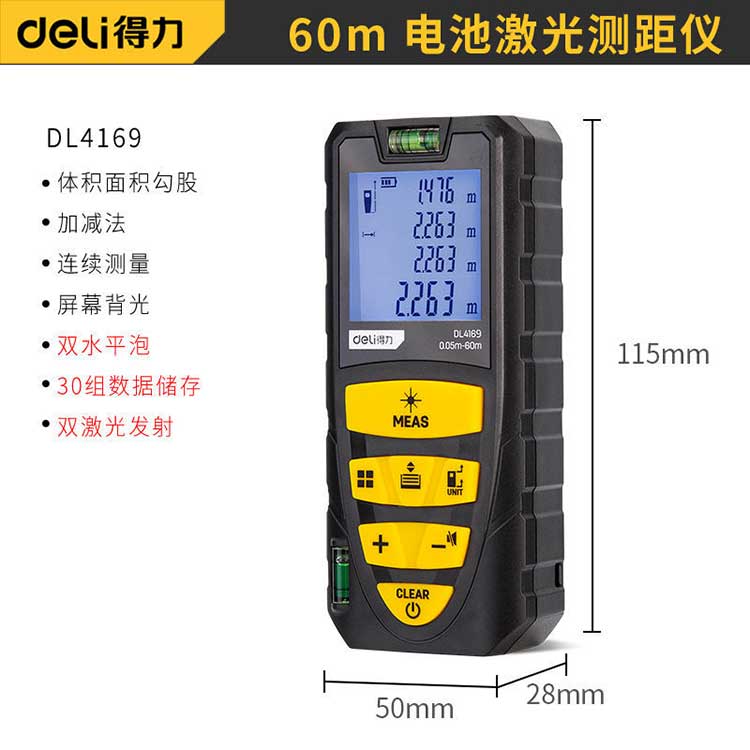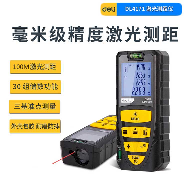 得力测距仪DL4171 100米双向水平泡 升级款