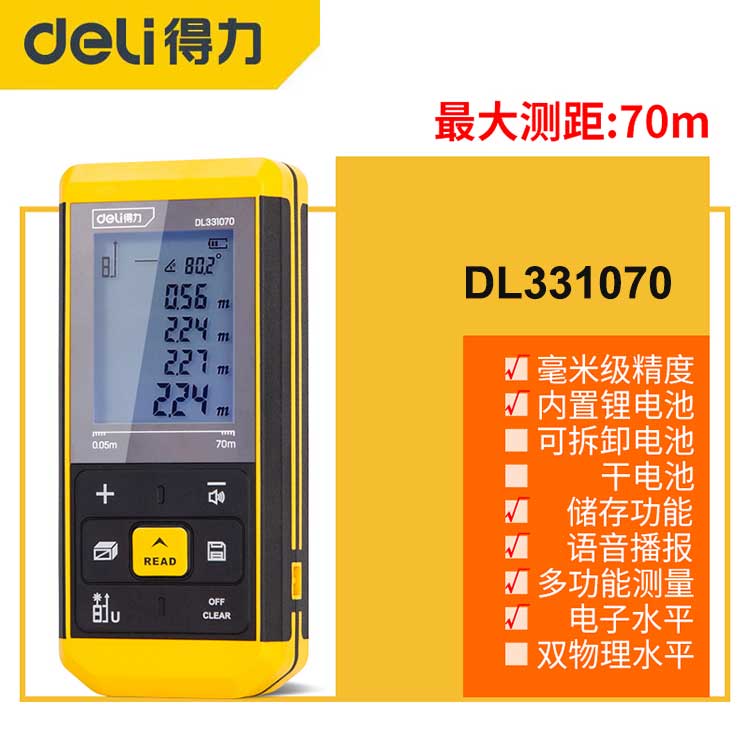 得力测距仪DL331070 70米激光电子测量尺 升级款