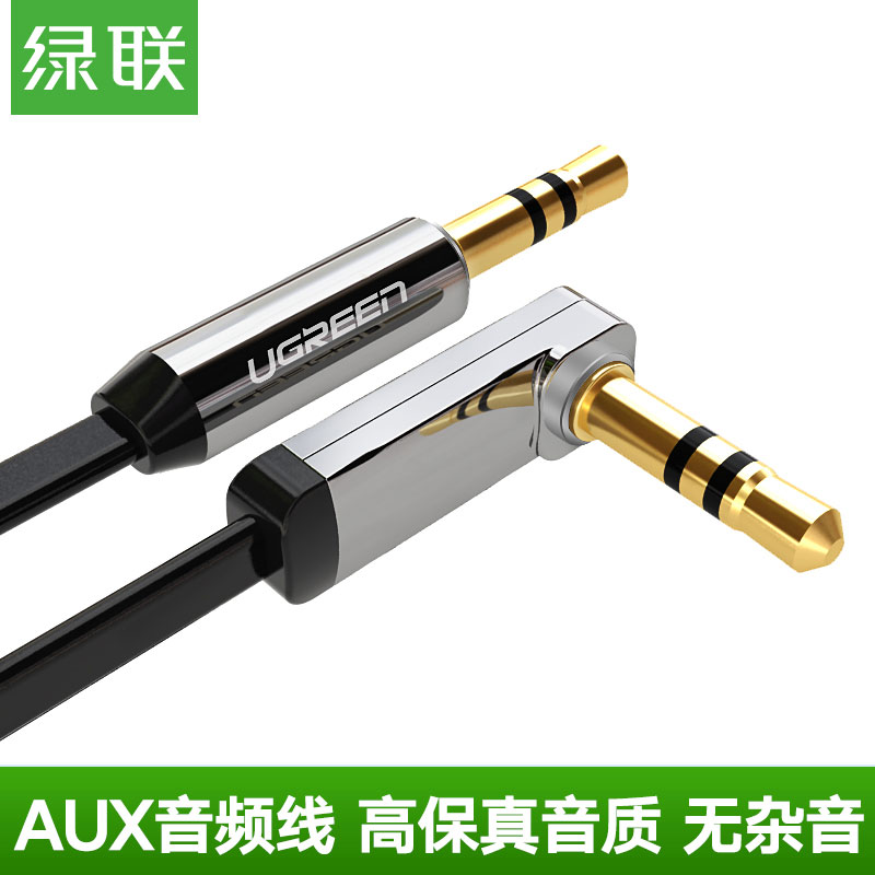 绿联AV119 10597 3.5直对弯扁平高端音频线1米