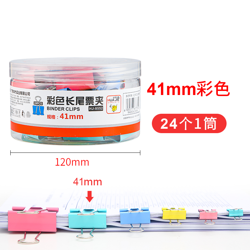 华杰彩色反尾夹HJ-8552 41MM