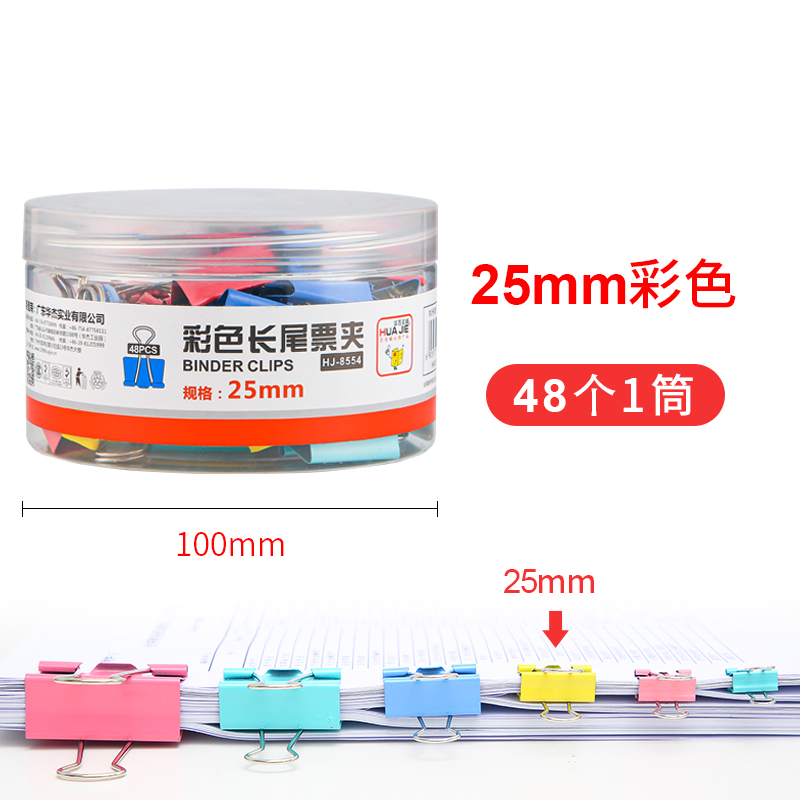 华杰彩色反尾夹HJ-8554 25MM