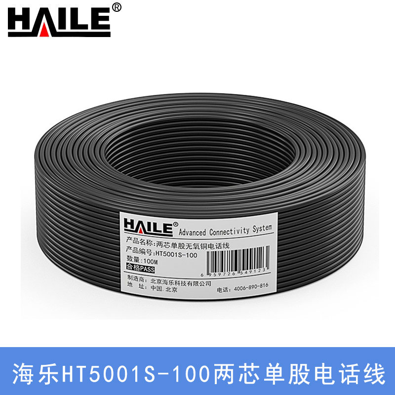 海乐HT5001S-100三芯单股电话线
