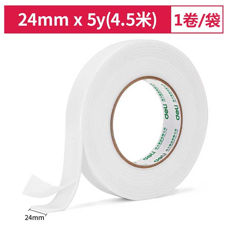 得力泡棉双面胶30412 24mm*5y(4.5m)*2.5mm