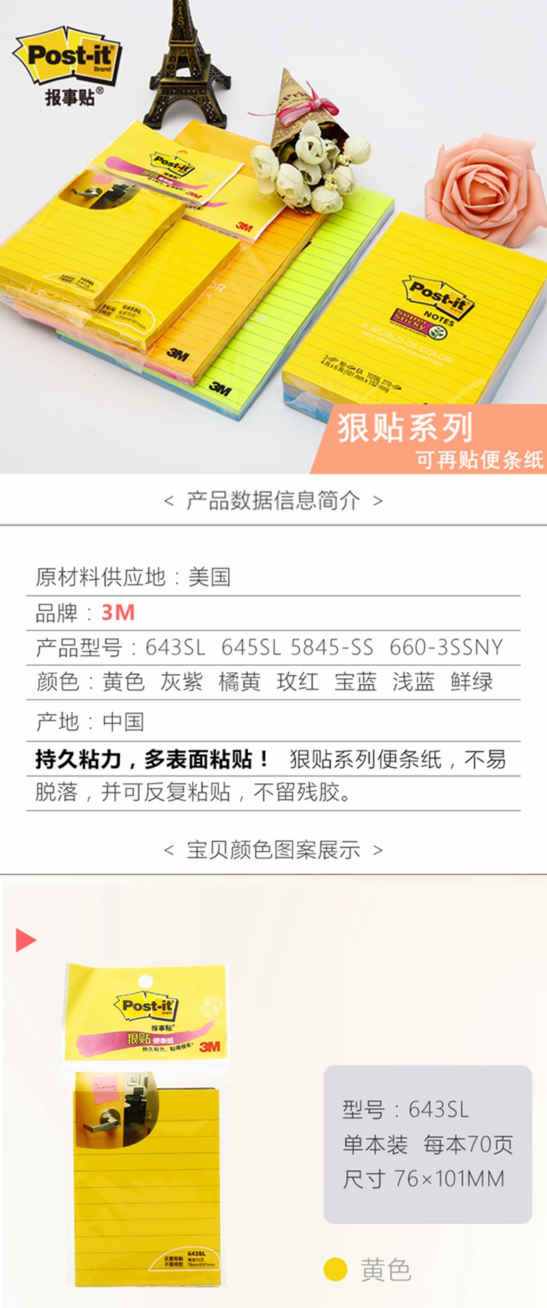 5. 3M 报事贴便条纸643SL 带横线
