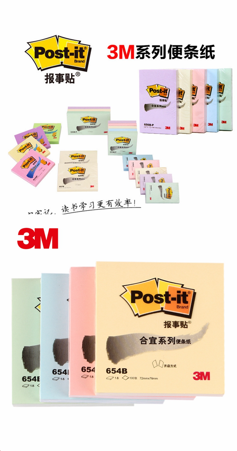 3M 合宜系列便条纸654B(混色)