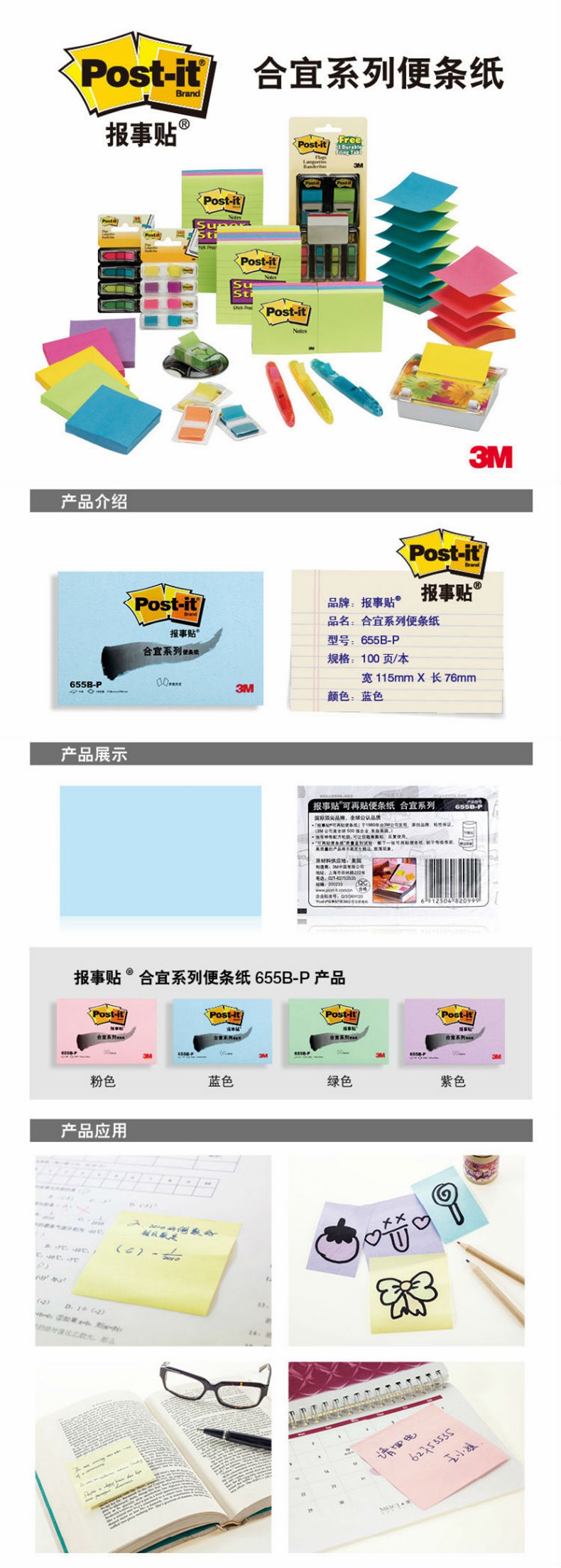 3M 合宜系列便条纸655B-P(混色)