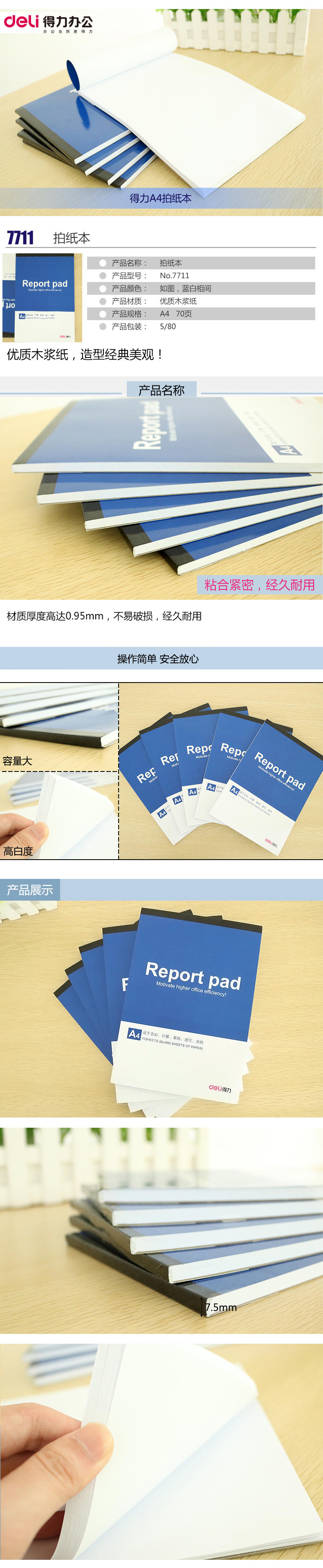 5. 得力便条本(蓝)NO:7711