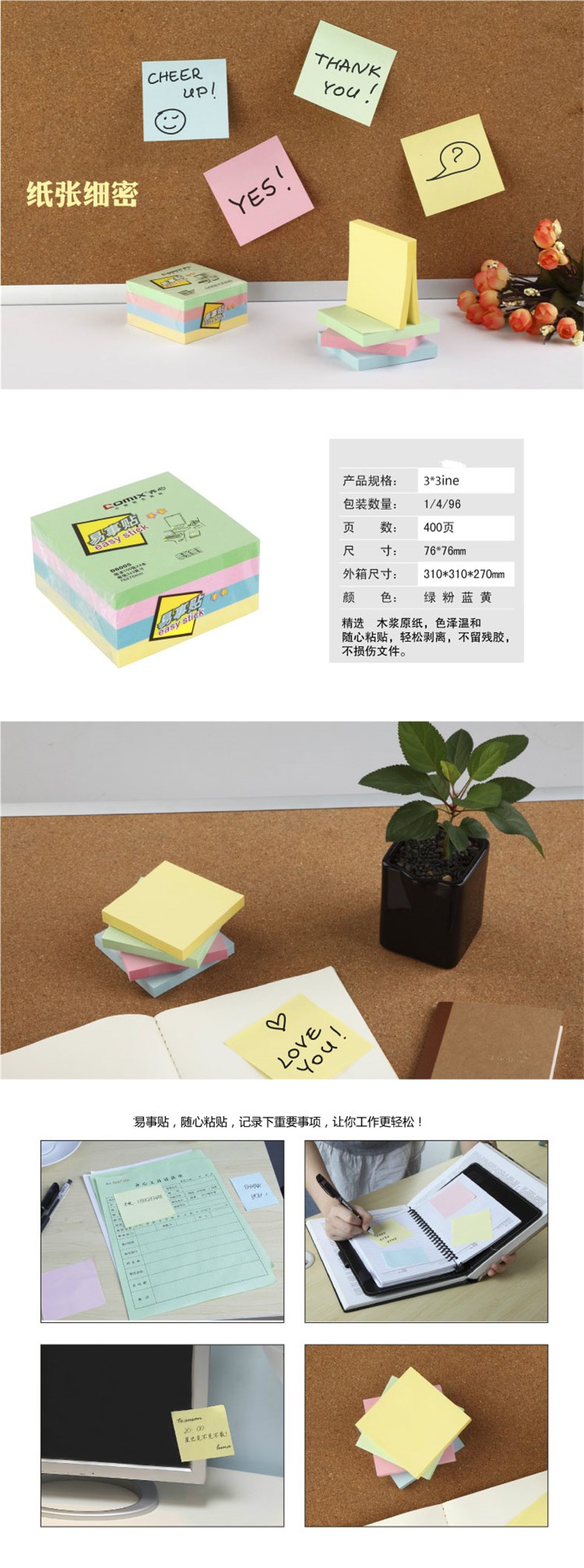 • 晨光3*3自粘便条本多彩80页YS-166