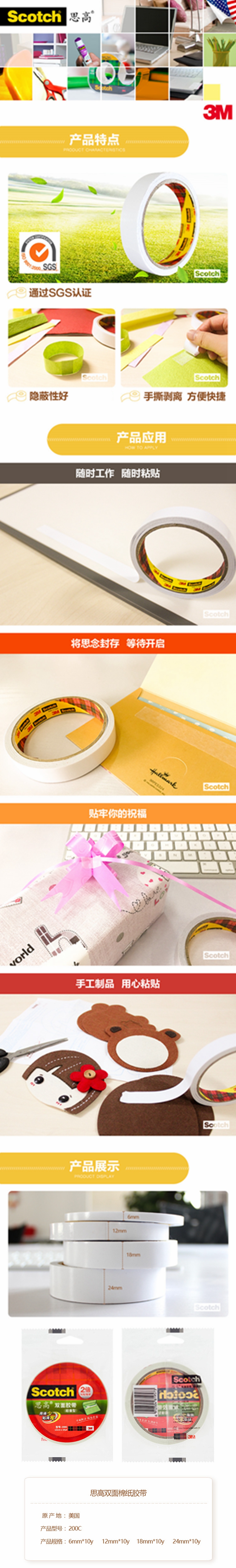 • 3M 双面胶带200C-12 12mm*10YM
