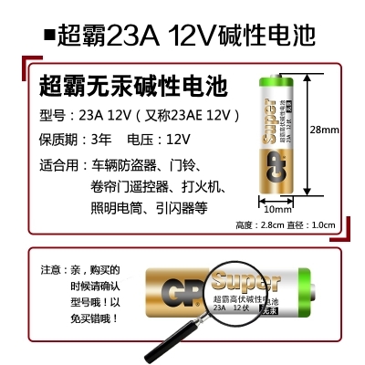 超霸车辆防盗器电池,23A