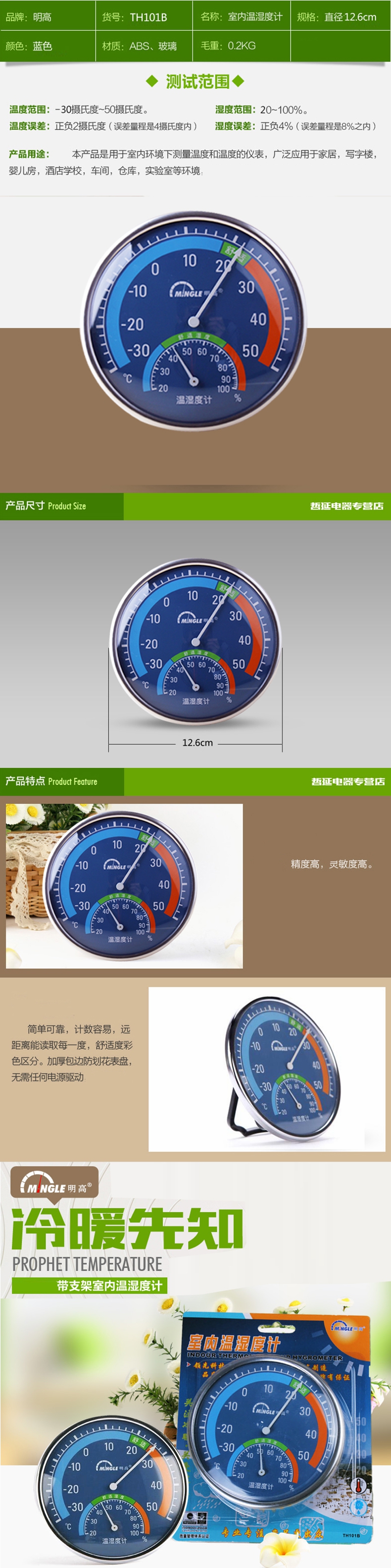 明高室内温湿度计TH101B