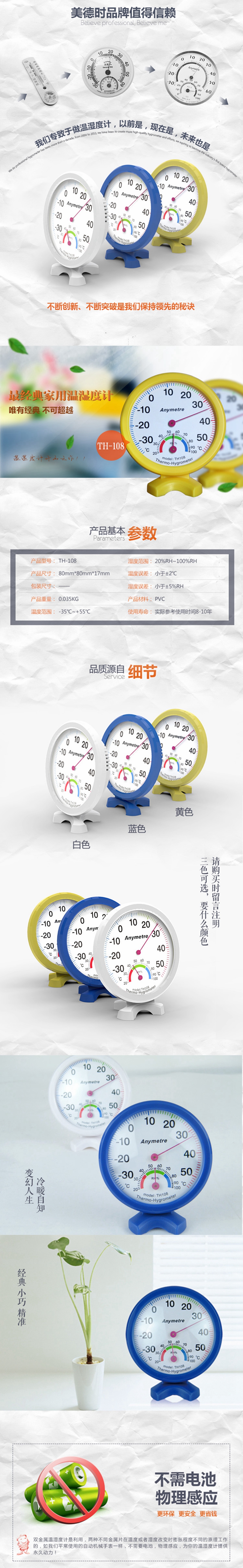 5. 美德时室内外温度计TH108