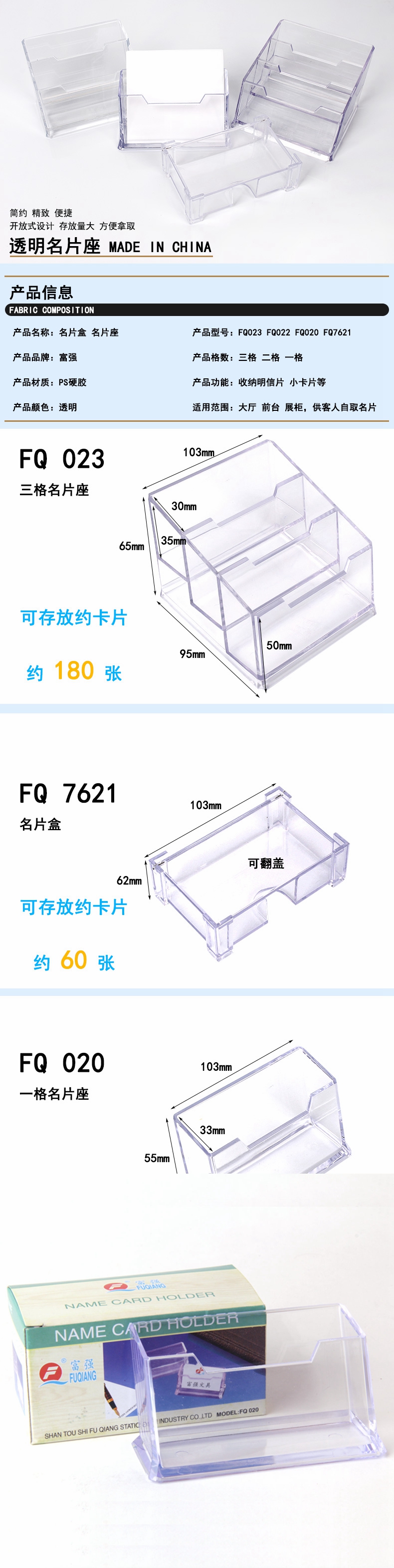 5. 富强三格名片盒FQ023