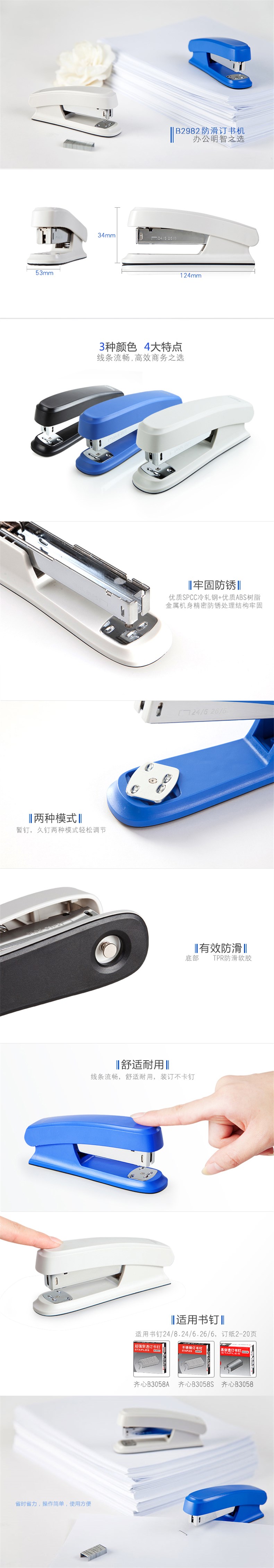 5. 齐心订书机B2982舒适防滑