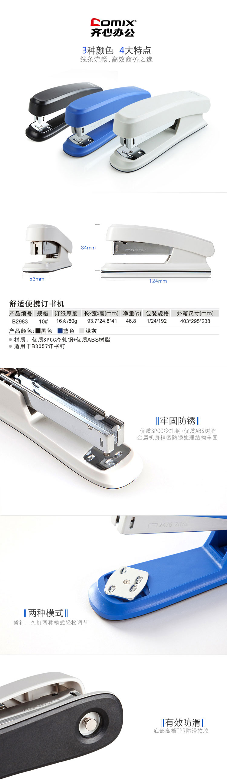 5. 齐心订书机10#B2983舒适便携