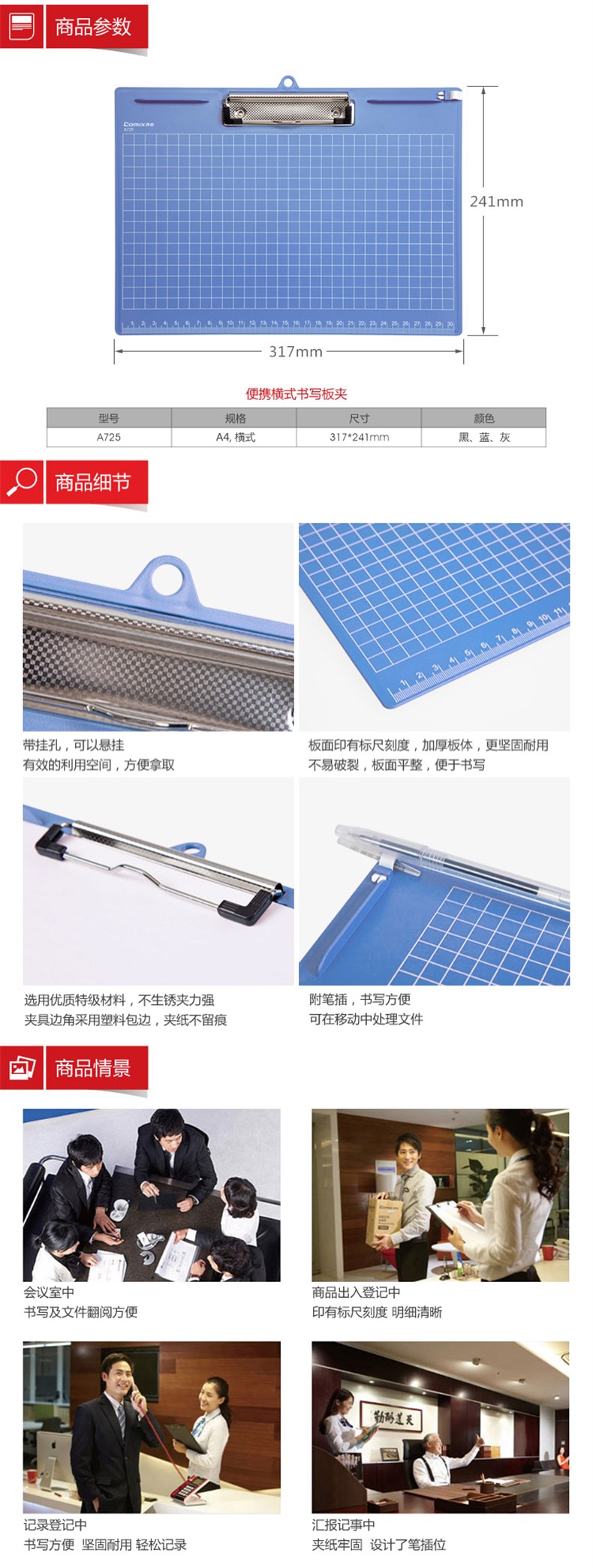 5. 齐心A725板夹A4横式 蓝