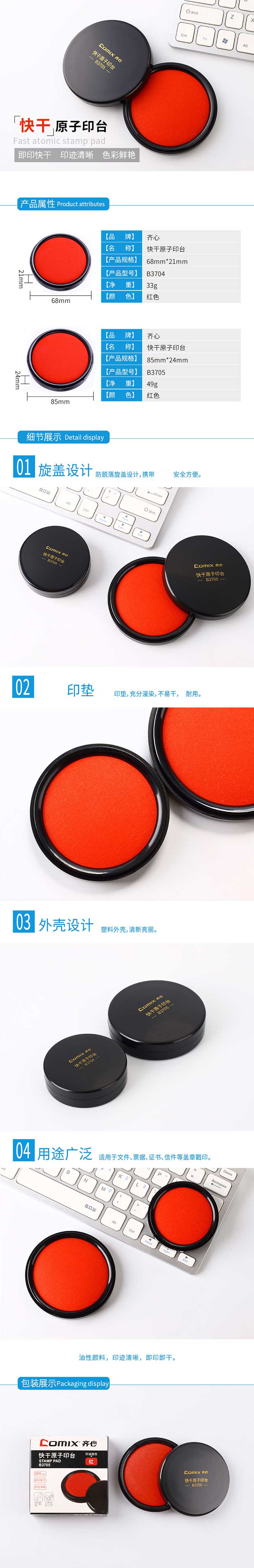 5. 齐心快干印台B3704 红