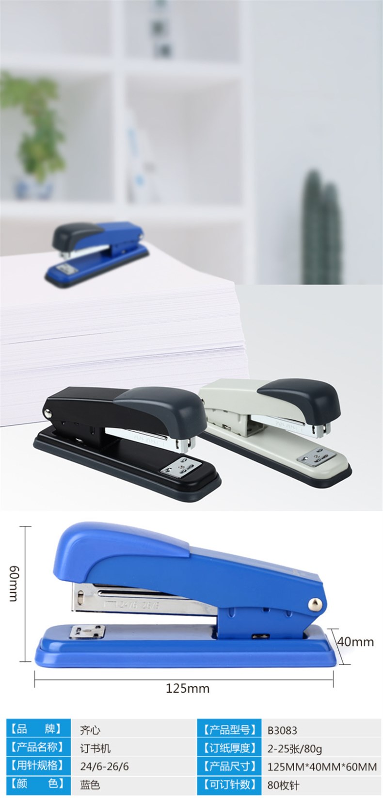 5. 齐心订书机B3083耐用金刚
