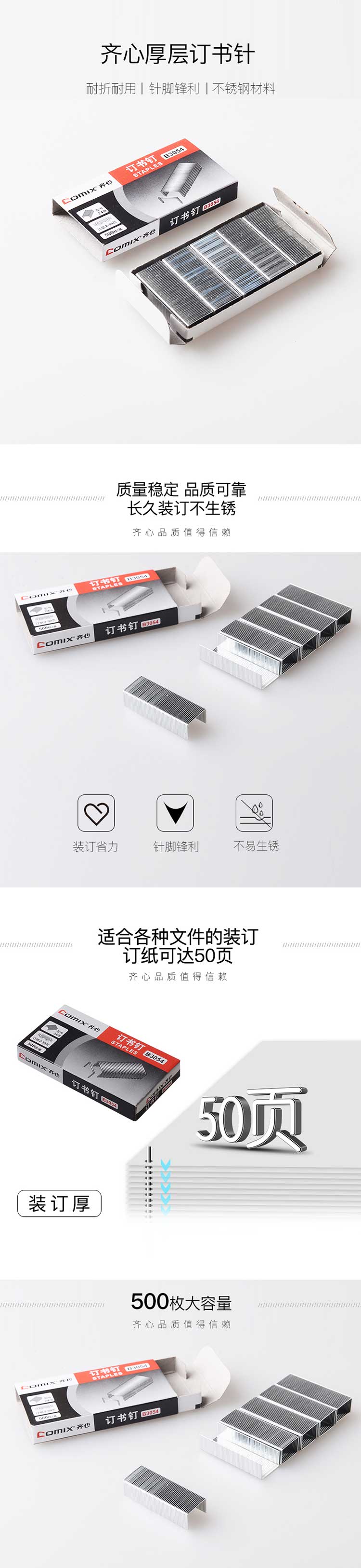 • 齐心厚层订书钉B3033