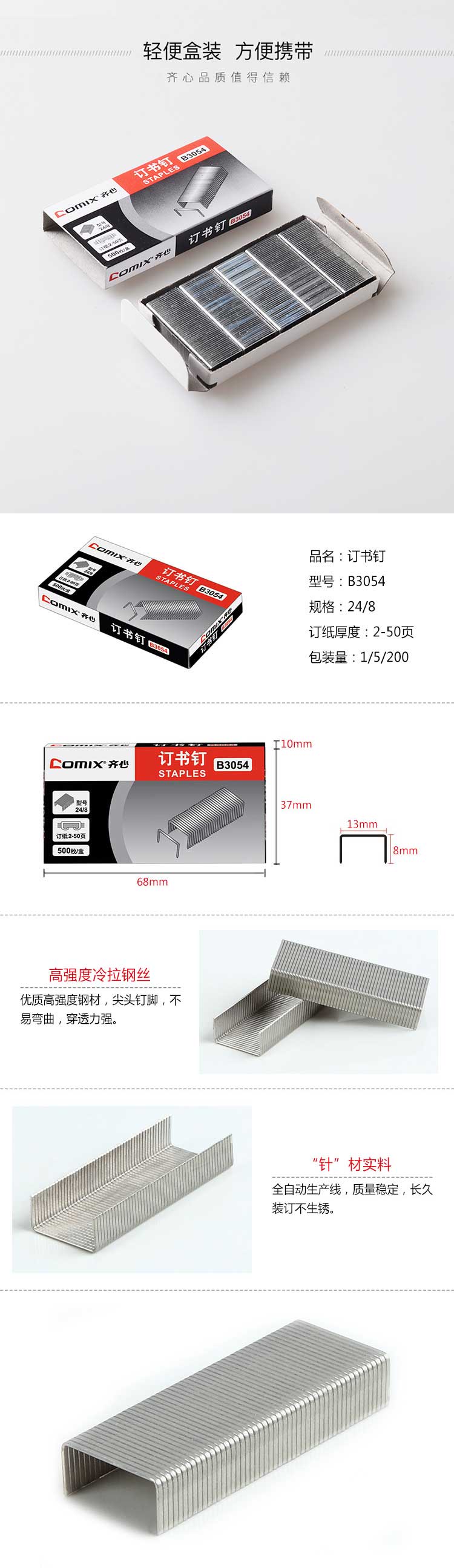 齐心易穿透订书钉B3054(24/8)
