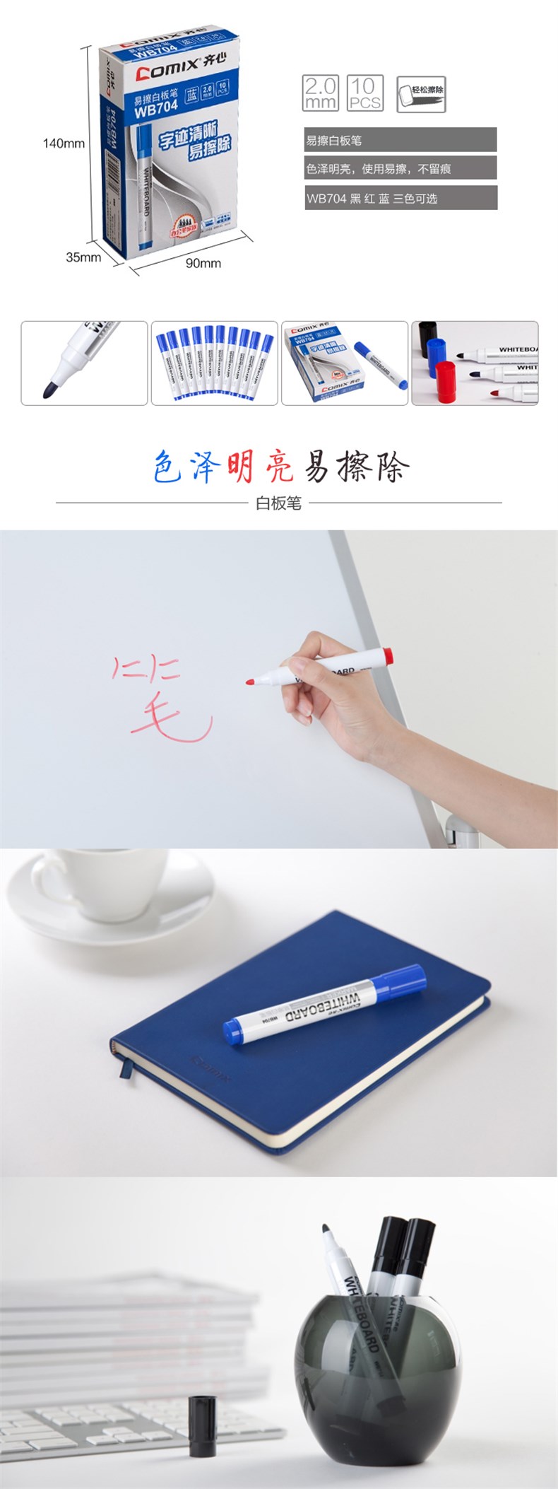 5. 齐心易擦白板笔WB704黑