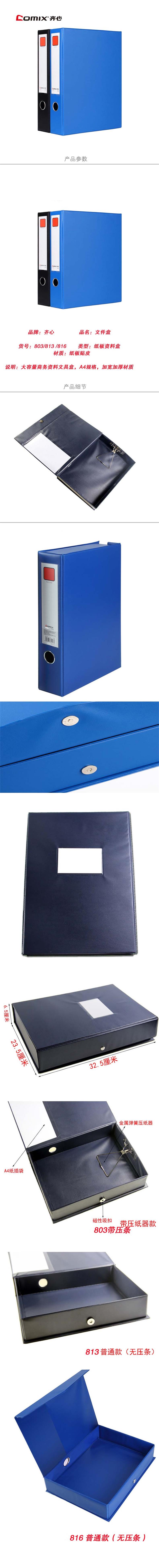 5. 齐心A4档案盒NO.813 55mm 蓝(无夹)