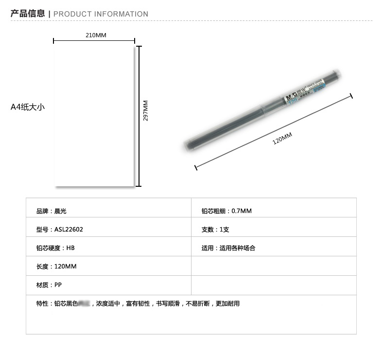 5. 晨光铅笔芯ASL22602黑HB0.7
