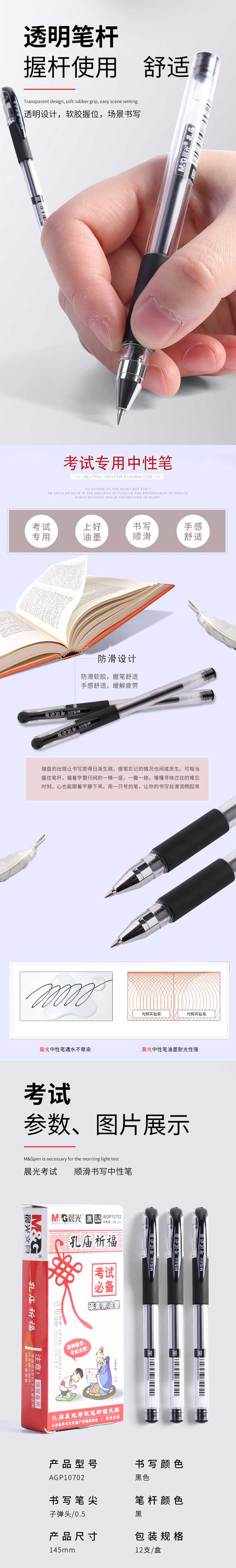 • 商品名称:晨光孔庙祈福中性笔0.5mm黑色碳素考试水笔 办公签字笔 AGP10702 黑色1支装