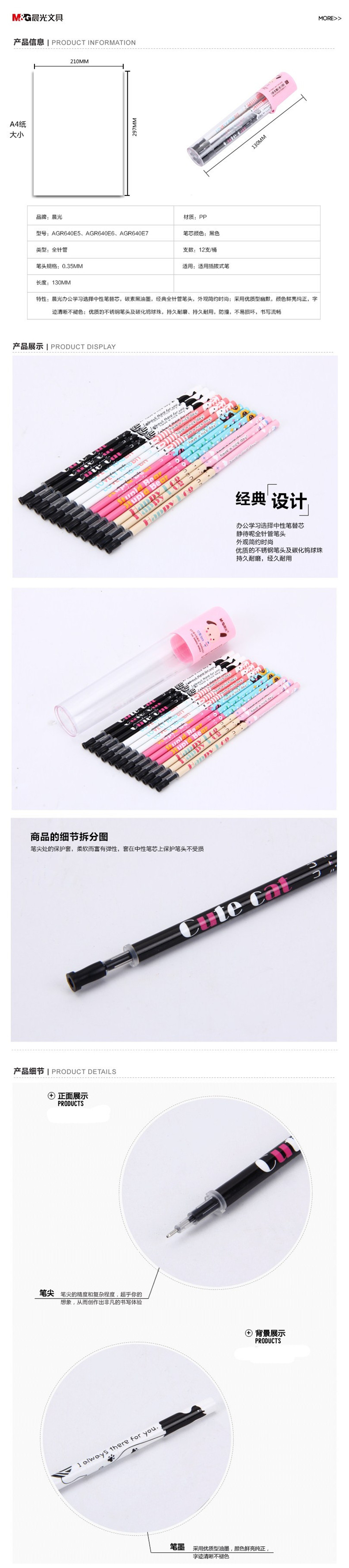5. 晨光筒装中性笔芯AGR640E5 黑 0.35 HAGR0231针管笔芯