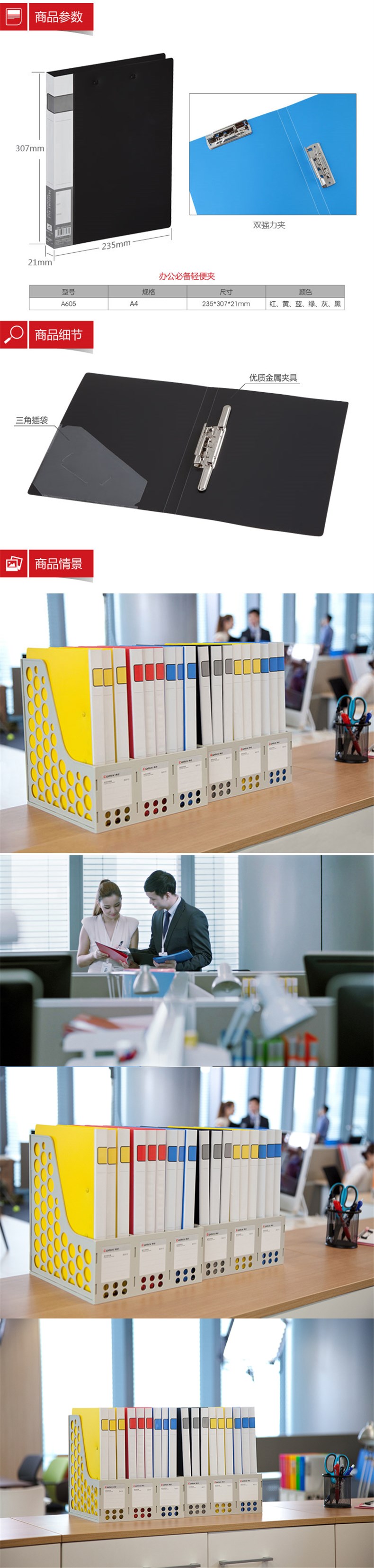 5. 齐心A605文件夹 黑色 双强力夹