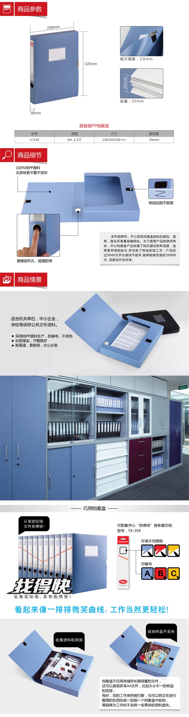 5. 齐心A1248(黑色)PP档案盒A4/1.5寸/35mm