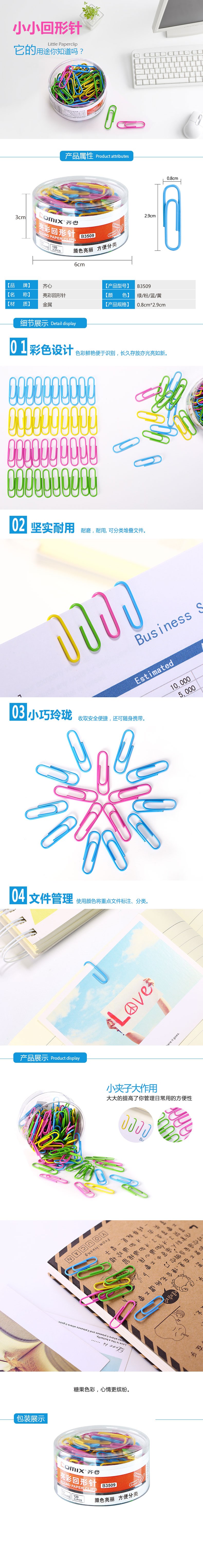 5. 齐心亮彩回形针B3509