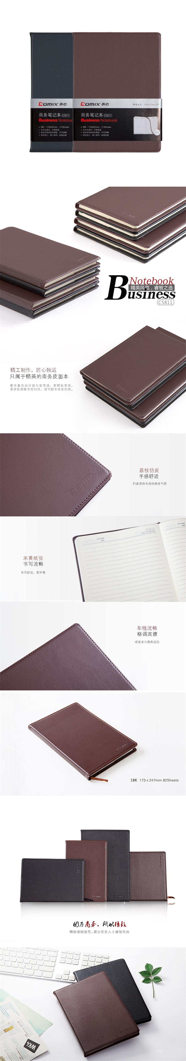 5. 齐心皮面笔记本C5811 黑色 18k 82页