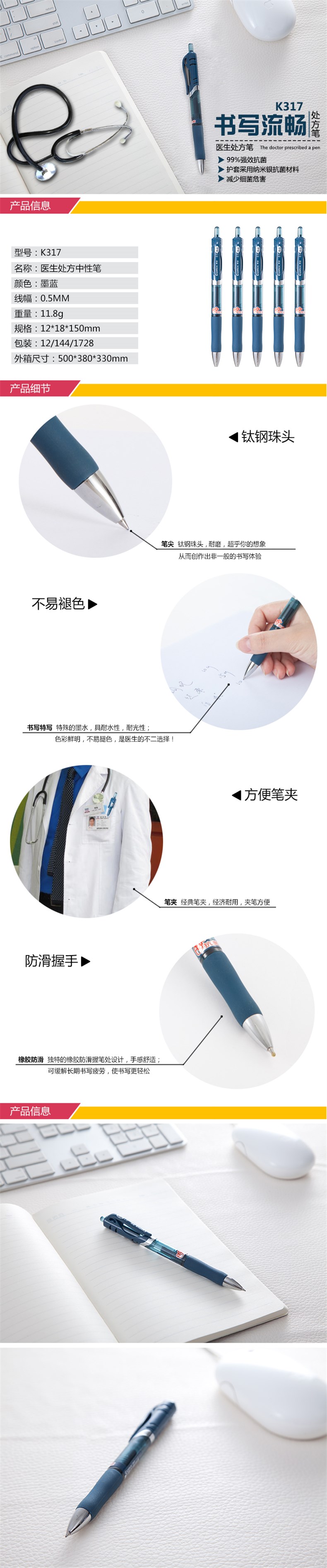 5. 齐心K317 医生处方中性笔0.5mm 墨蓝