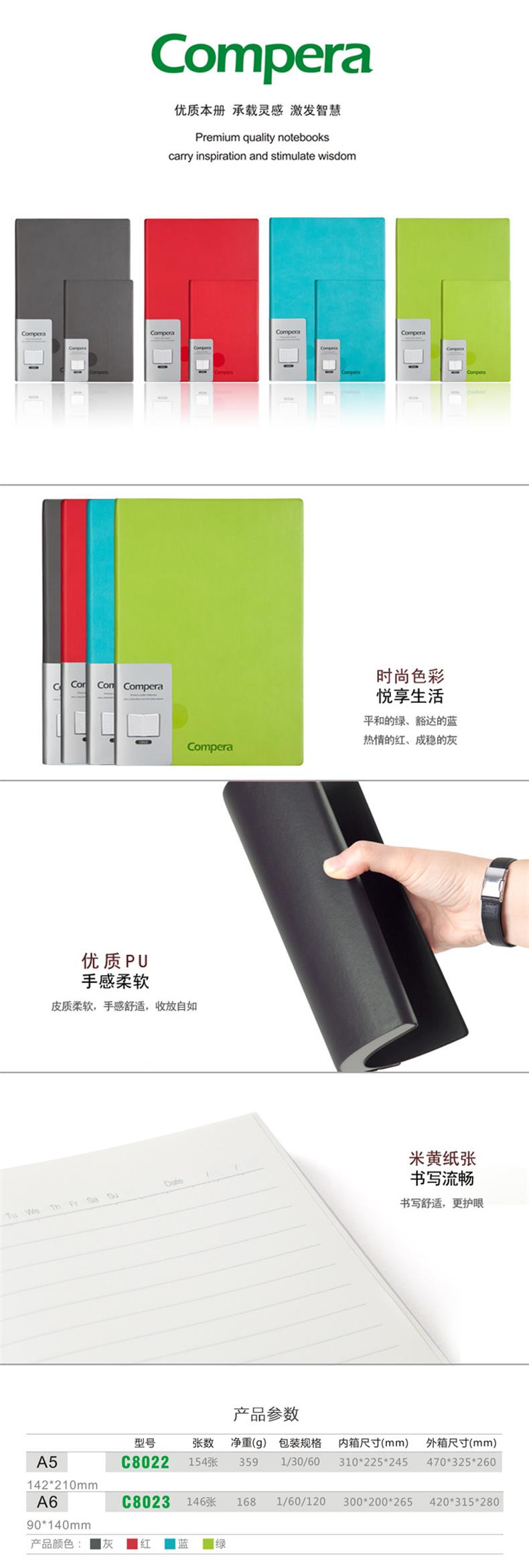 齐心C8022皮面笔记本 A5 154张灰