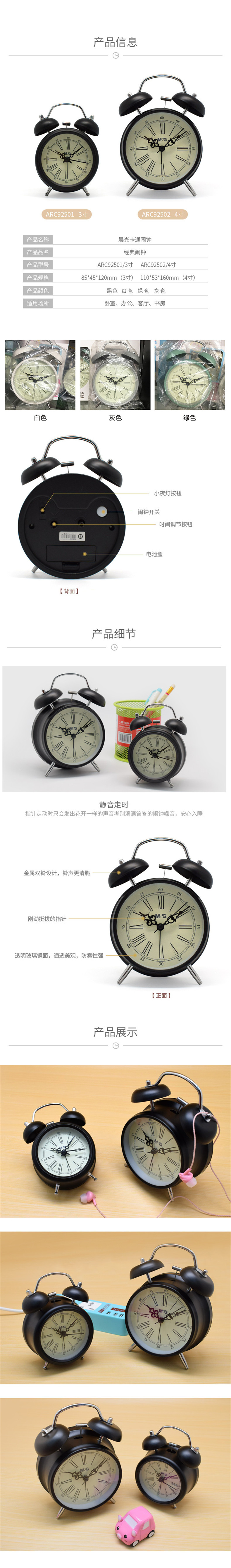 • 晨光经典3寸闹钟ARC92501