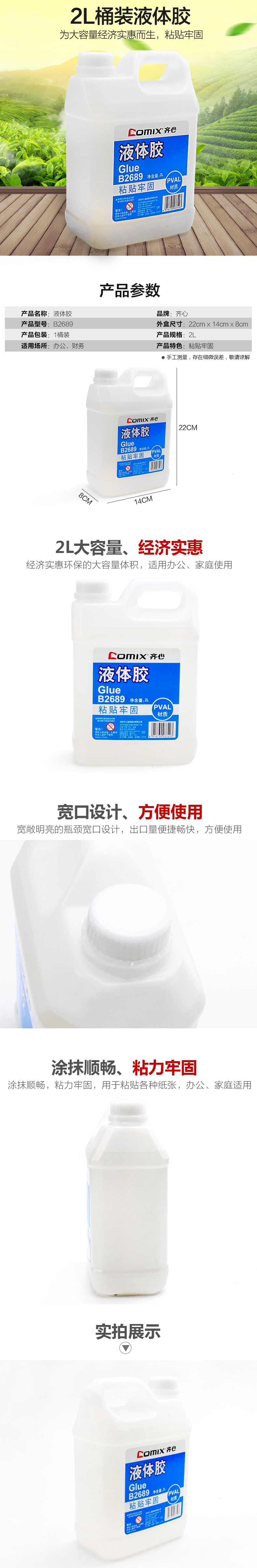 5. 齐心B2689液体胶 2L 透明