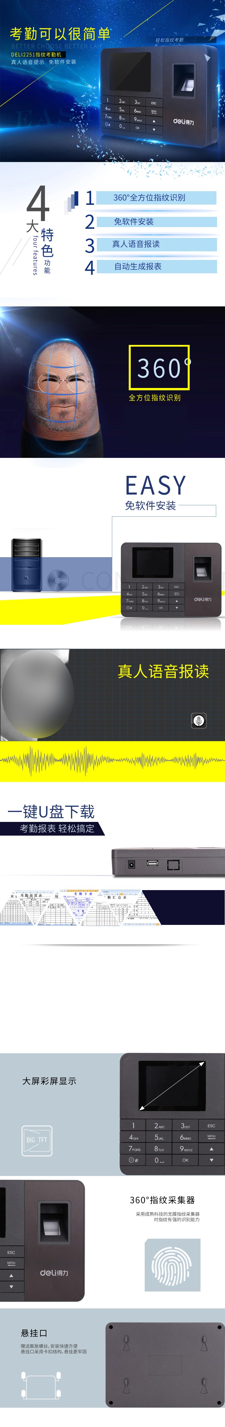 5. 得力指纹考勤机2251(深灰)