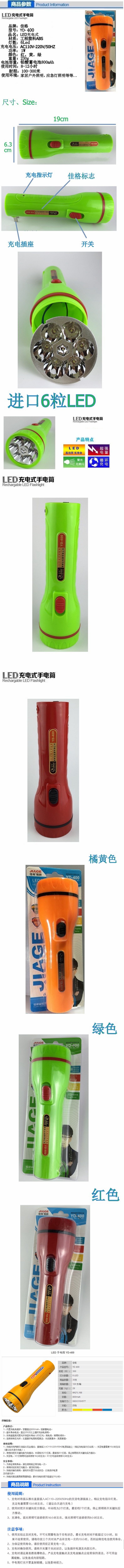 佳格LED充电式手电筒YD-400