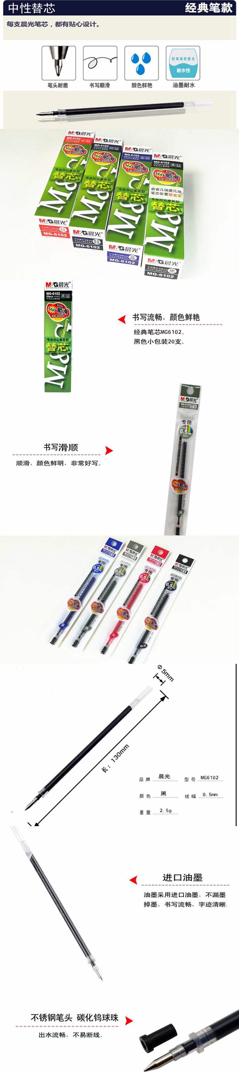 5. 晨光中性笔芯MG-6102 黑 0.5 AGR67005