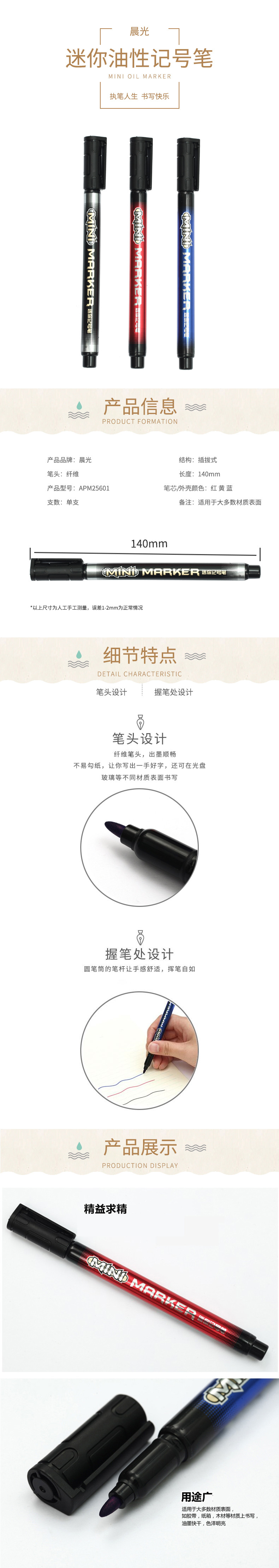 • 晨光迷你记号笔APM25601 蓝色 单头