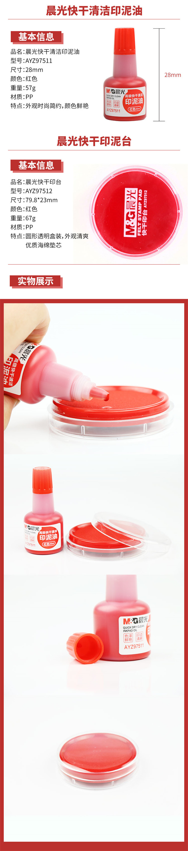 • 晨光高级快干清洁印泥油AYZ97511(红)