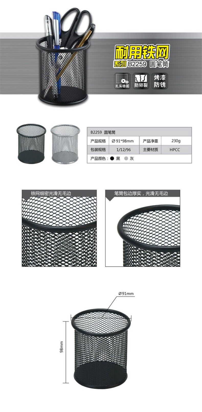 齐心B2259耐用圆笔筒