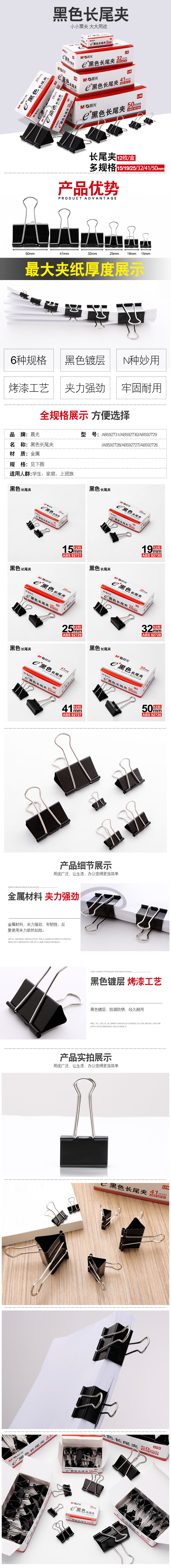 5. 晨光黑色长尾夹ABS92726 50MM(纸盒装)