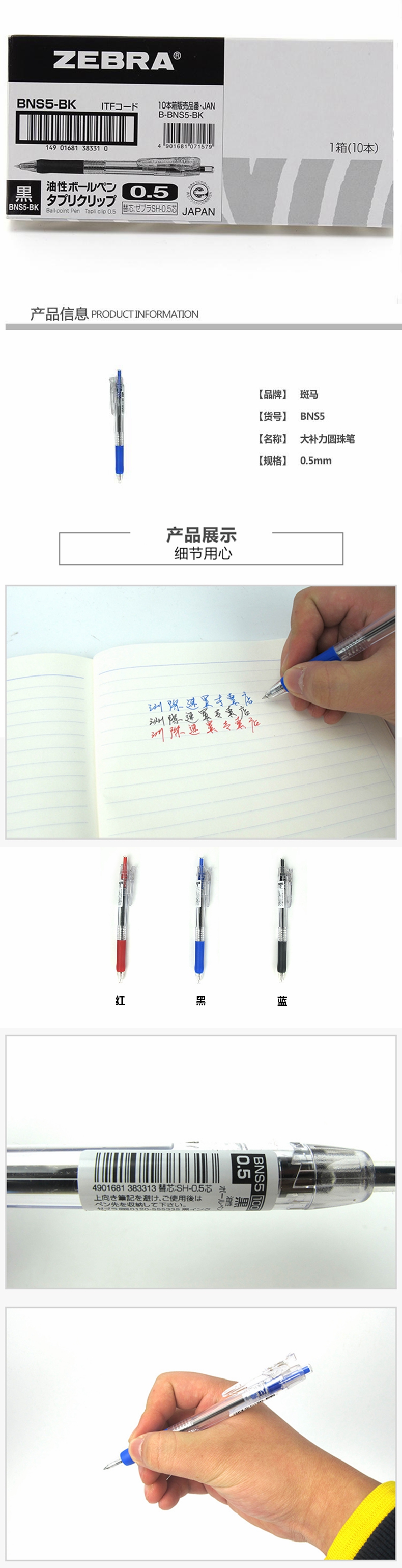 5. 斑马按制圆珠笔BNS5-BL蓝色0.5mm