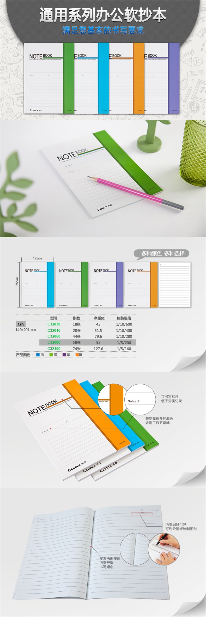 5. 齐心C32080办公软抄本32K 58页