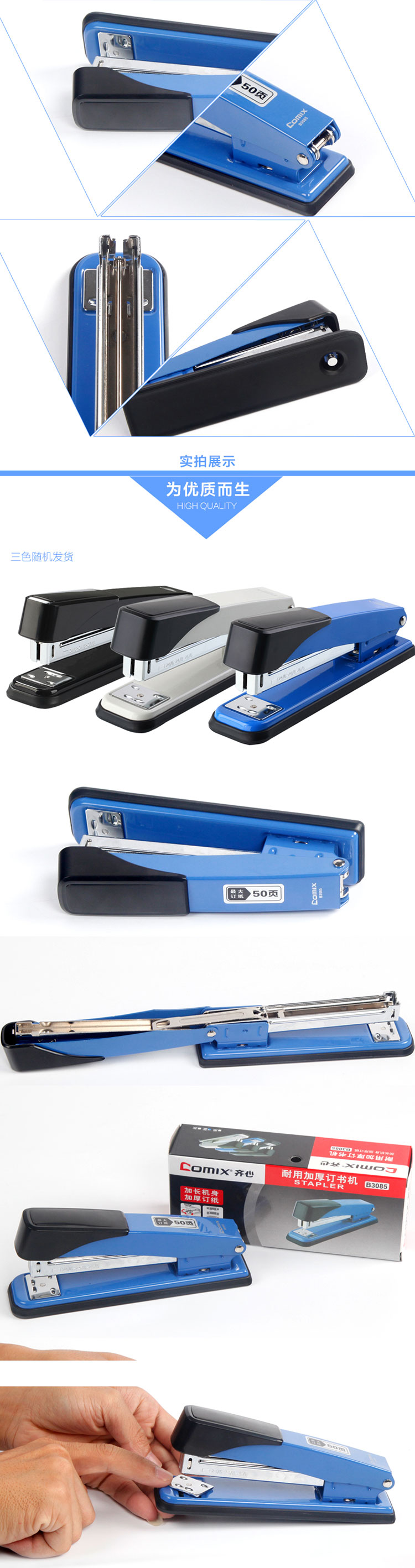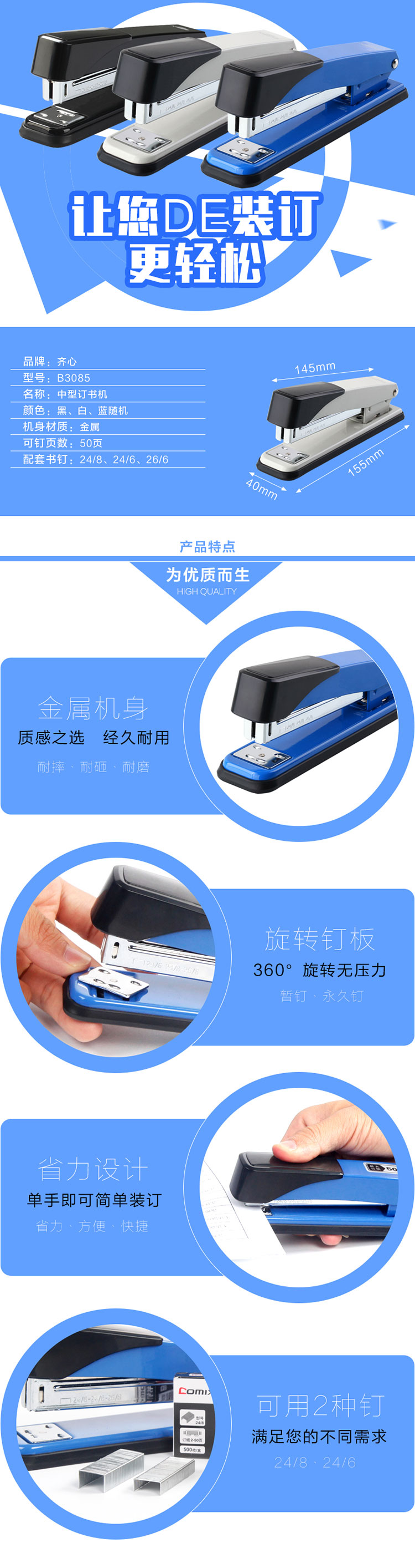 5. 齐心B3085金属订书机12# 50页