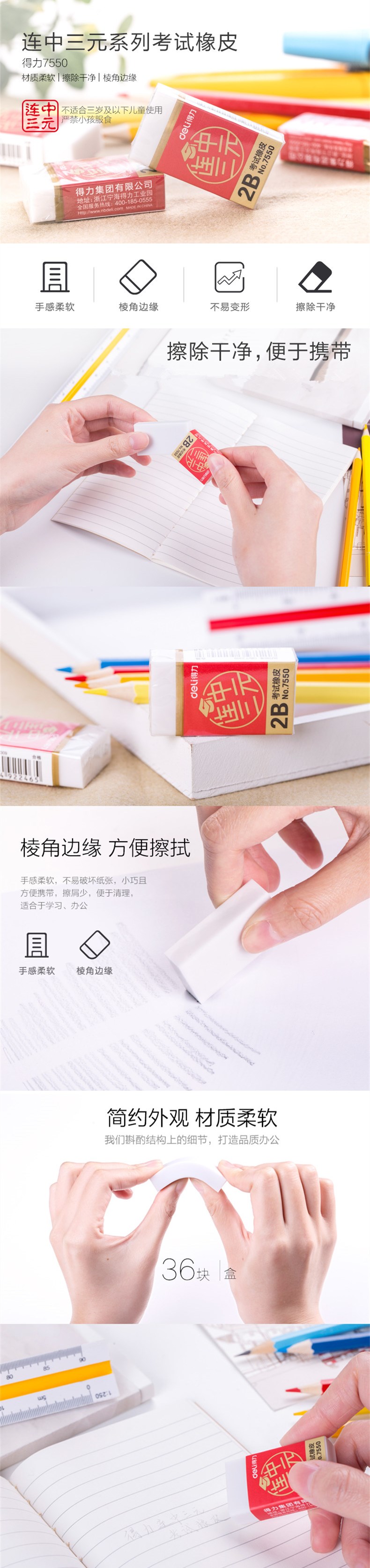 5. 得力2B橡皮擦7550