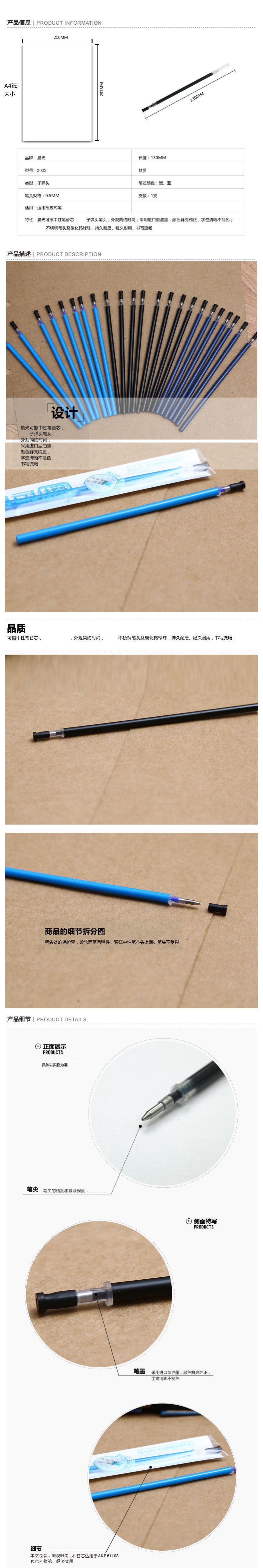 • 晨光陶瓷球珠热敏可擦中性替芯3003黑0.5