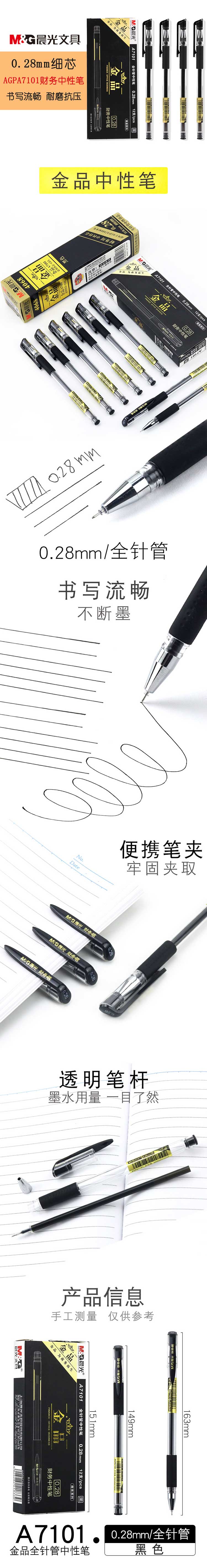 • 商品名称:晨光(M&G)针管财务记账专用笔 陶瓷球珠中性笔 金品AGPA7101细尖0.28 黑色 12支/盒